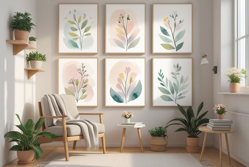 Seasonal print rotations keep small spaces feeling fresh throughout the year. Digital downloads make it affordable to switch between spring florals and winter landscapes.