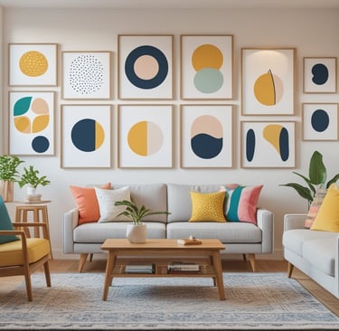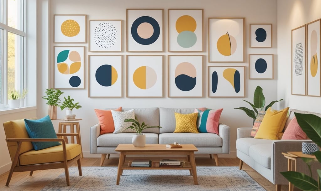 Primary color matching creates cohesive room design. Pull one dominant color from existing furniture, textiles, or wall paint to use as the main color in your digital prints.